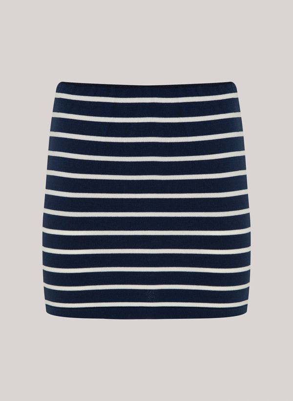 Confeccionada em tricot, o shorts saia possui modelagem justa, cós médio, hot pant interno para maior conforto, plaquinha metalizada personalizada, comprimento curto e acabamento canelado.