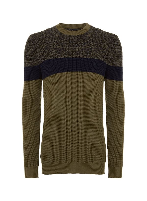 Confeccionado em tricot, o Suéter possui modelagem regular, mangas longas, gola careca e padronagem mesclada.