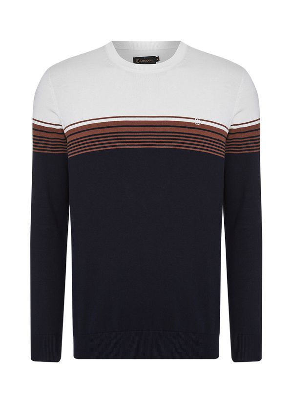 Confeccionado em tricot, o Suéter possui modelagem regular, padronagem listrada, mangas longas, gola careca, detalhe frontal de logo bordado e acabamento canelado.
