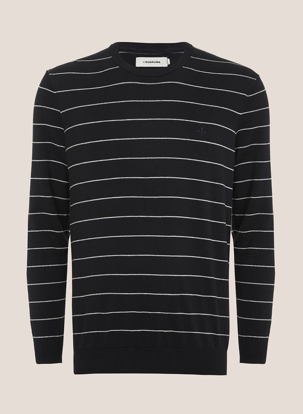 Confeccionado em tricot, o Suéter possui padronagem listrada, decote redondo, mangas longas e acabamento canelado.
