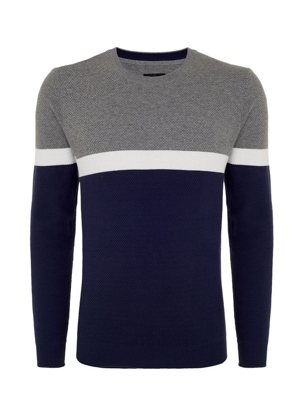Confeccionado em tricot, o Suéter possui modelagem regular, padronagem listrada, mangas longas com punhos canelados, detalhe frontal de logo bordado e barra com acabamento canelado.
