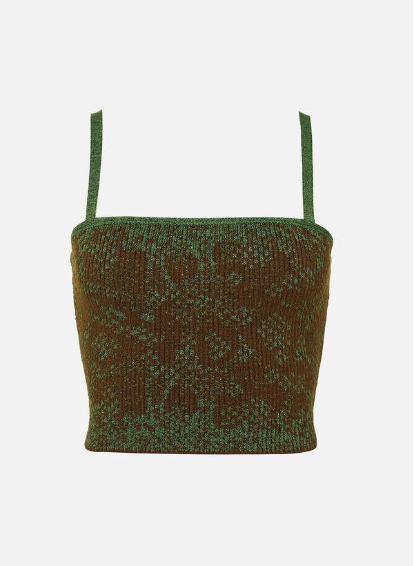 Confeccionado em tricot, o Top possui modelagem justa, comprimento curto, alças finas, decote quadrado frontal e posterior e acabamento interno.