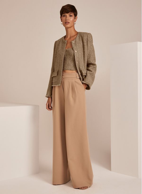 Invista em peças de tweed com modelagens trendy para compor looks criativos e fora do óbvio como o Top Sara. Experimente combinar com o casaco da mesma coleção, calça de alfaiataria, brincos e sandália de salto. O resultado é um visual interessante e elegante.