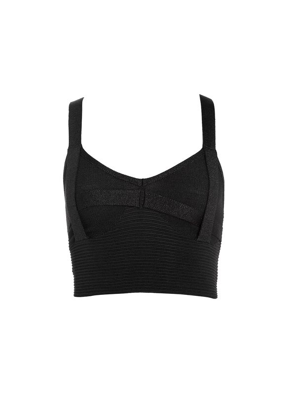 Confeccionado em tricot canelado, o Top possui modelagem cropped, alças finas e detalhe de tiras cruzadas aplicadas no busto.