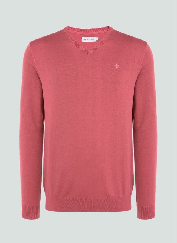 O Tricot é confeccionado em modelagem reta, decote V, mangas longas, detalhe frontal de logo bordado e acabamento canelado.