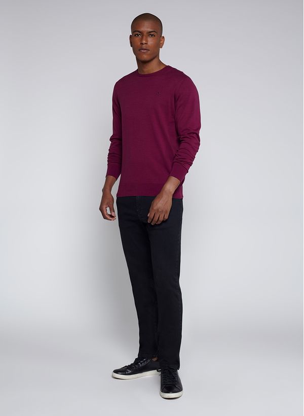 O Tricot é confeccionado em malha, possui modelagem regular com caimento solto, gola redonda, mangas longas, detalhe frontal de logo bordada e acabamento canelado.