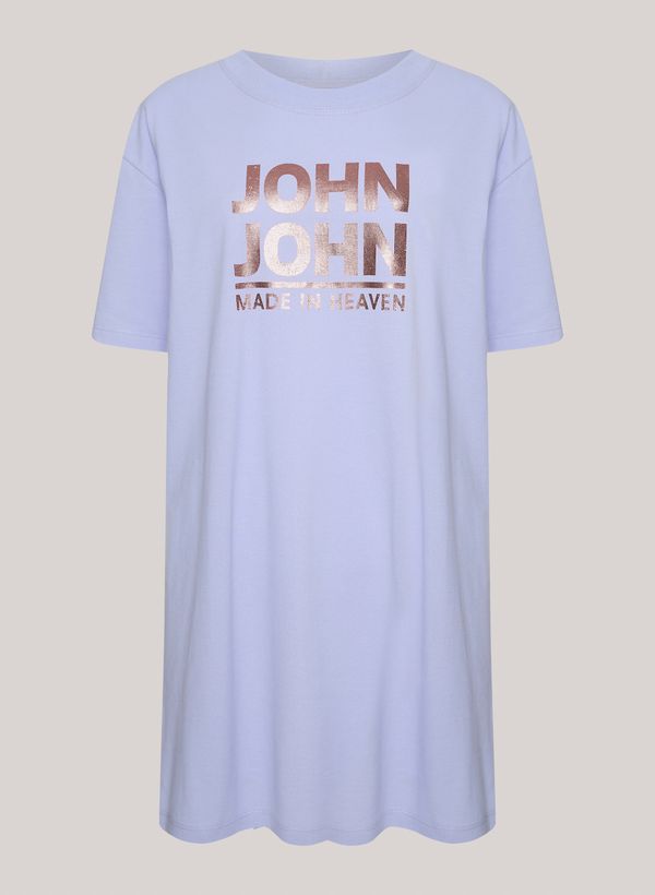 Confeccionado em malha com algodão piquet, o Vestido possui modelagem ampla, gola careca, estampa frontal em foil metalizado, mangas curtas, comprimento curto e acabamento pespontado.