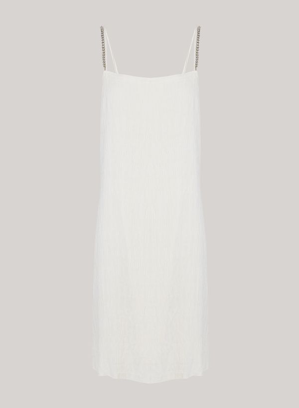 Confeccionado em tecido plano, o Vestido possui modelagem ampla, decote reto, alças duplas, decote nas costas, elástico posterior, comprimento curto e acabamento pespontado.