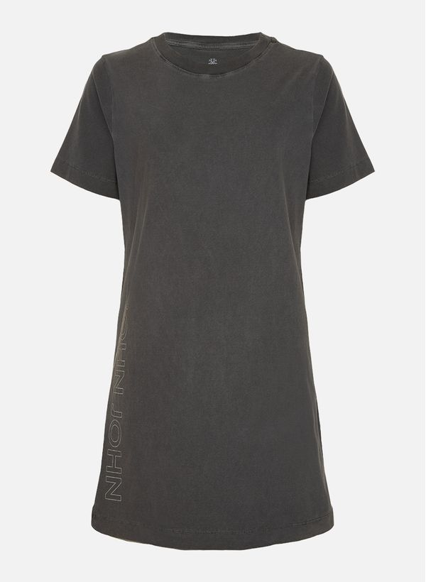 Confeccionado em malha, o Vestido possui modelagem ampla, gola careca, estampa institucional na lateral, mangas curtas, comprimento curto e acabamento pespontado.