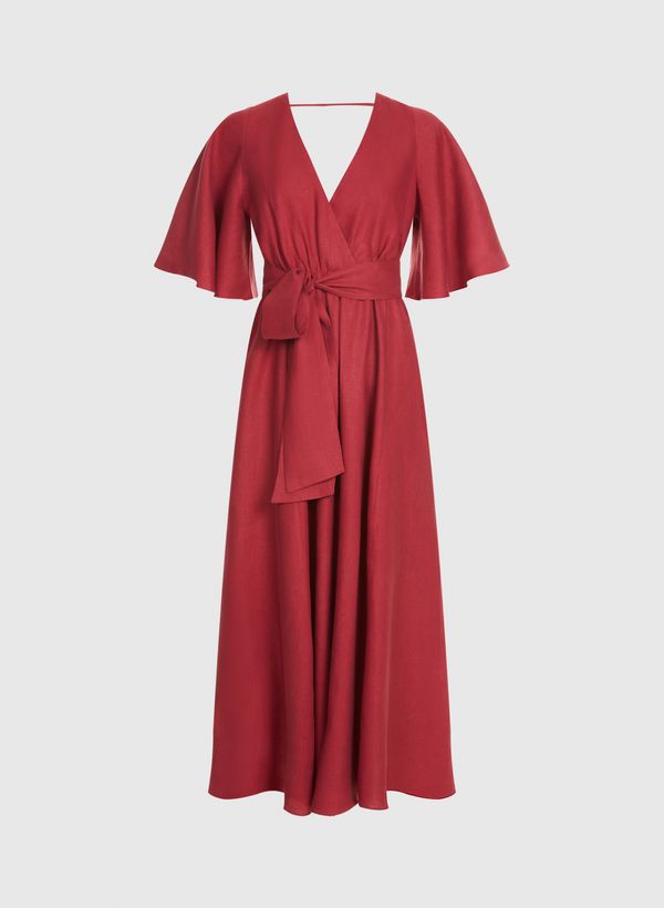 Confeccionado em linho, o Vestido possui modelagem reta, caimento acinturado, decote em "V" transpassado, mangas curtas amplas, detalhe posterior com tira e recorte vazado, fechamento posterior por zíper invisível, forro interno, comprimento midi e acabamento pespontado.