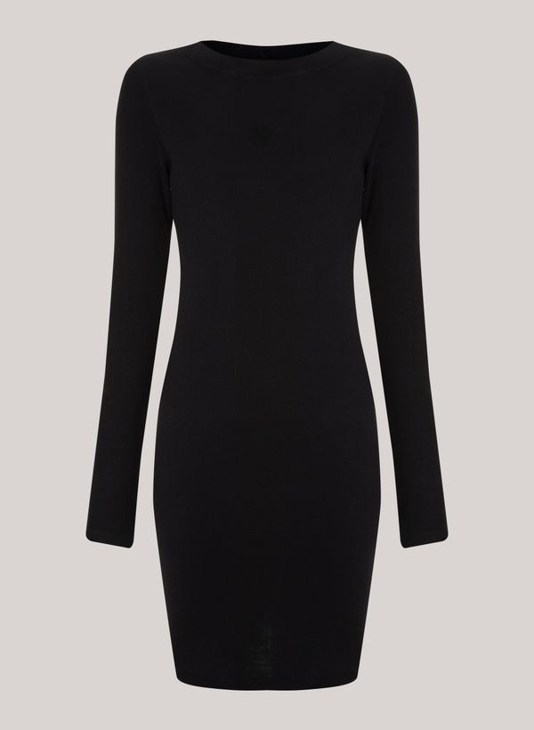 Confeccionado em malha canelada, o Vestido possui modelagem justa, gola careca, assinatura da marca em relevo, mangas longas, comprimento curto e acabamento canelado.