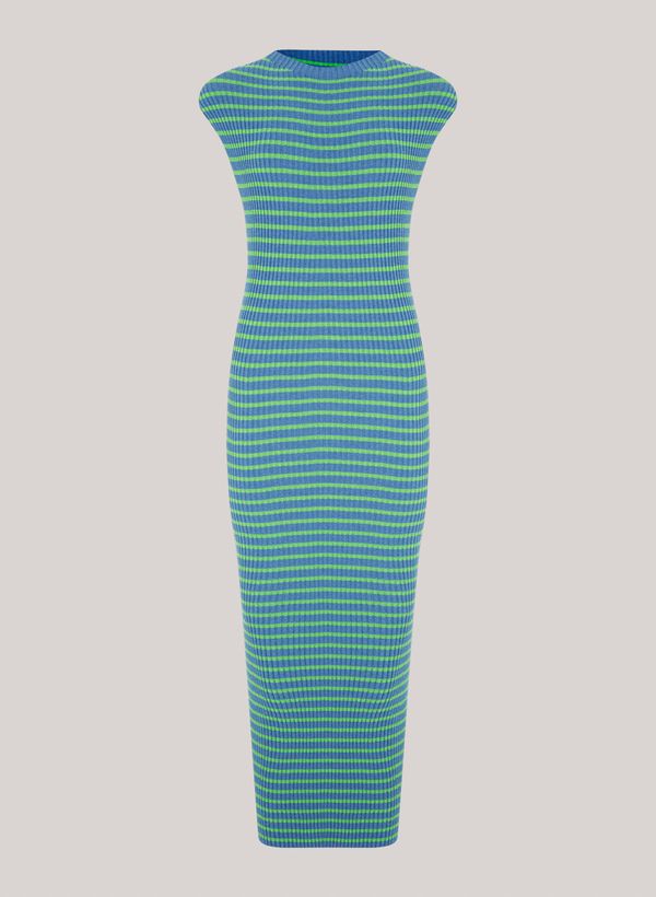 Confeccionado em tricot, o Vestido possui modelagem justa, gola redonda, ombros largos, comprimento midi e acabamento canelado.