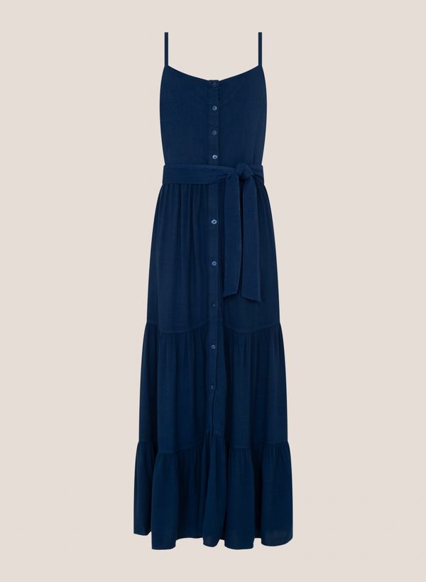 Confeccionado em tecido plano, o Vestido possui modelagem Special Fit, comprimento longo, vista para abotoamento, faixa do mesmo tecido para amarração, detalhe logo em metal, alças finas e acabamento pespontado.